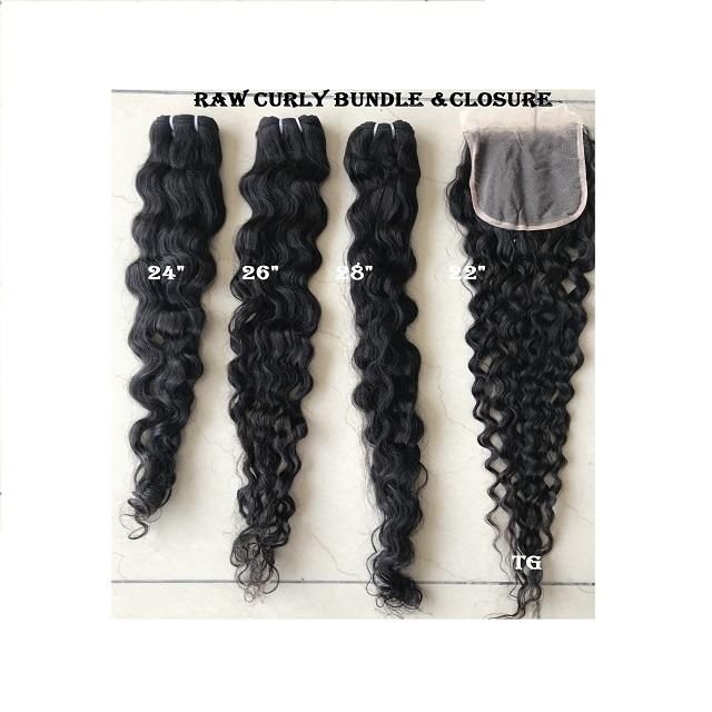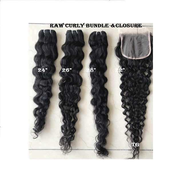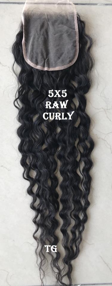 Nom du produit:Paquet bouclé de vague d'eau brute et cheveux humains de fermeture 5x5