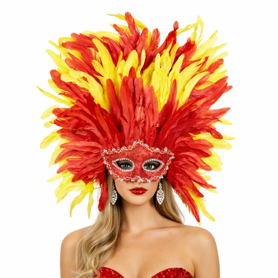 Masque facial en plumes inspiré du sambas brésiliennes pour les événements de carnaval, les fêtes de filles, les festivals, les tenues de carnaval