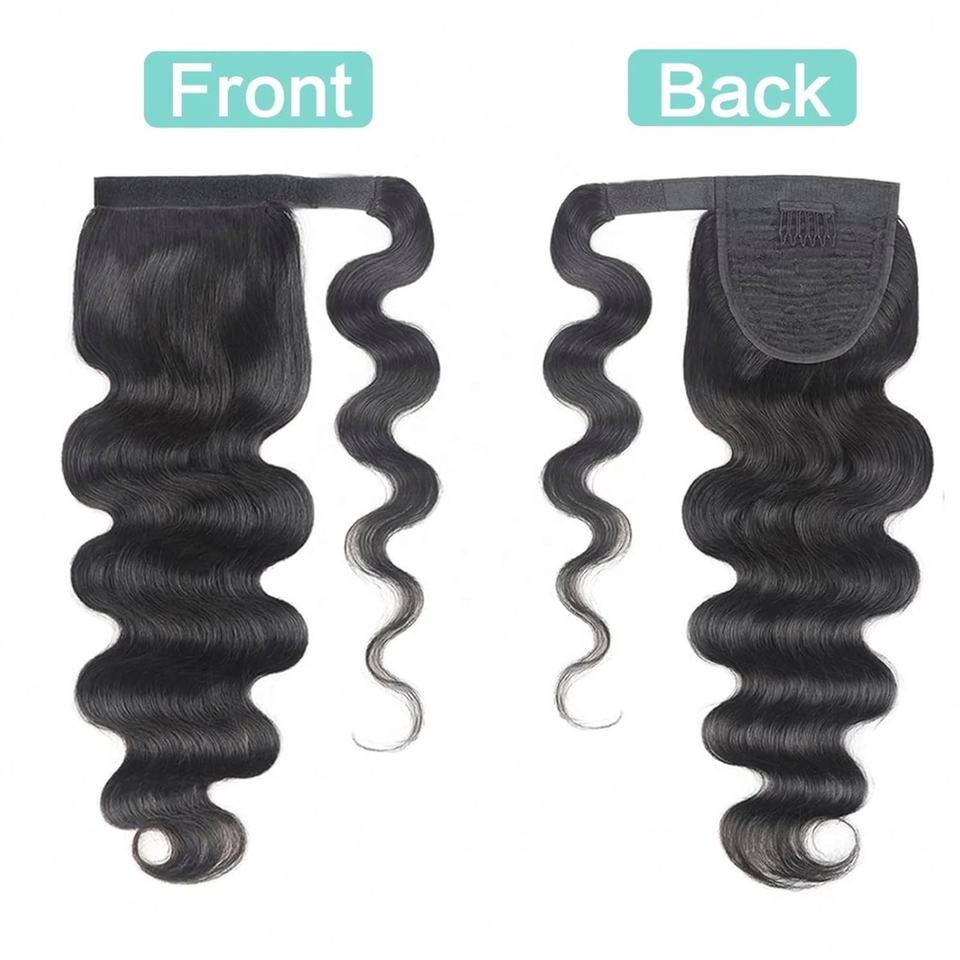 Modèle Pré-Collé:Extensions de cheveux humains à enrouler autour de la queue de cheval