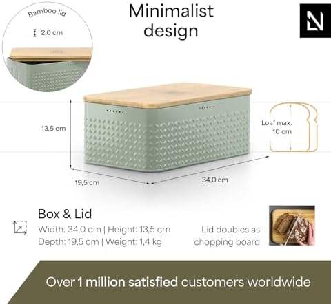Boîte à pain Boîte en métal avec sac en lin pour une fraîcheur durable Boîte à pain avec couvercle en bambou utilisable comme planche à découper