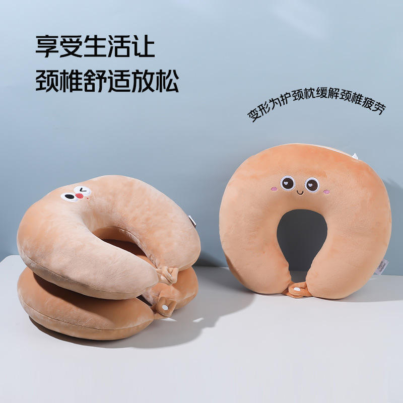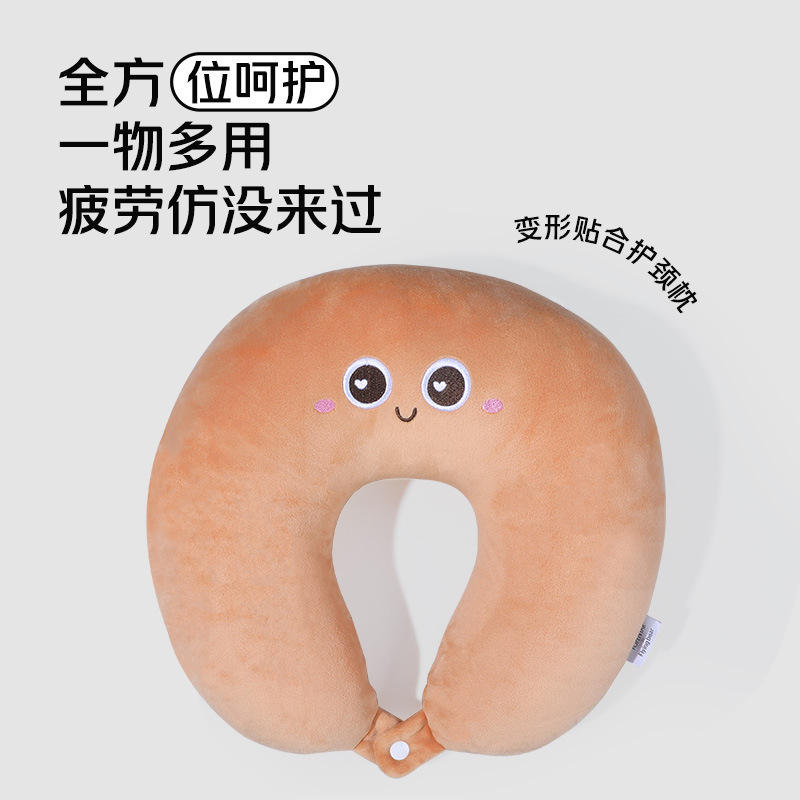 Oreiller de voyage en forme de U, type pain, 28x24x10cm, en polyester, portable, coussin de soutien pour la sieste au bureau, design confortable