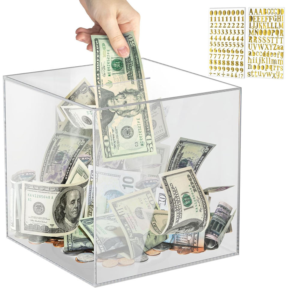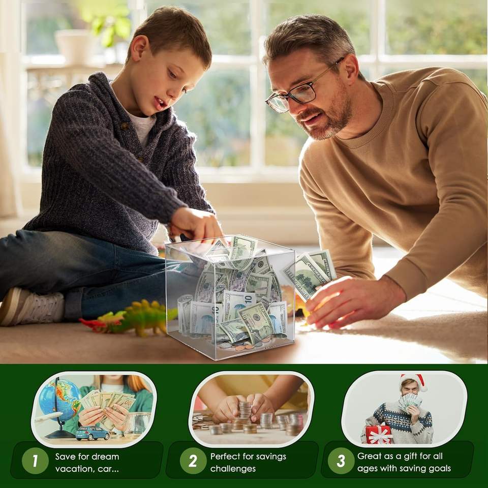 Tirelire en acrylique transparente pour enfants et adultes, boîte à monnaie pour économiser de l'argent