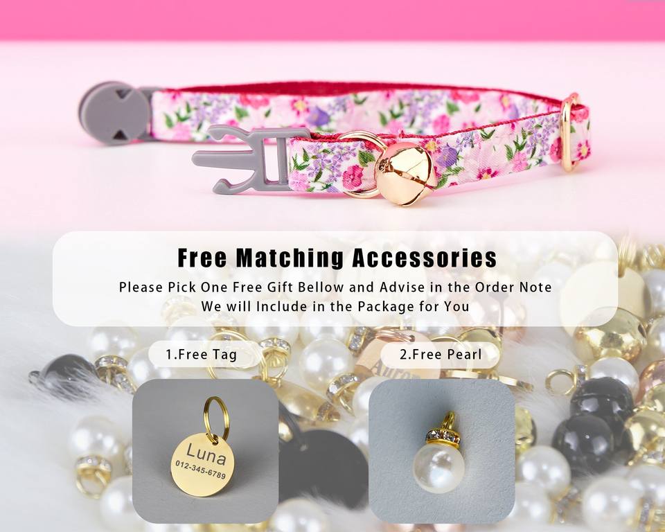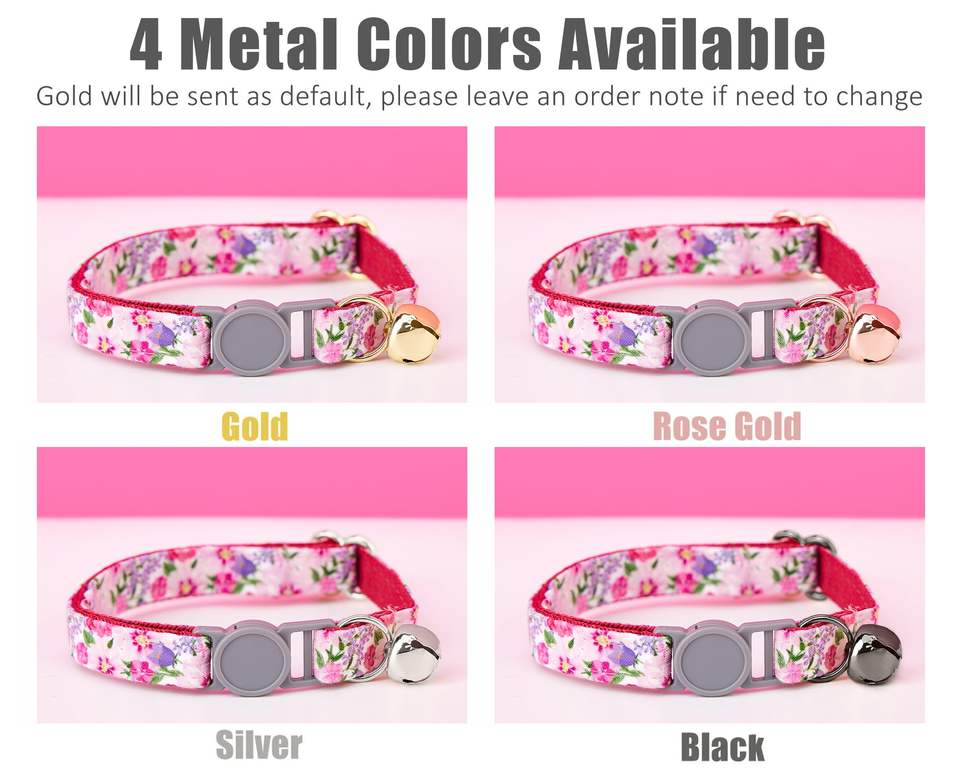 Ensemble collier et laisse pour chat personnalisé avec nœud papillon floral coloré, avec nom de chaton gravé sur mesure, boucle de sécurité et or