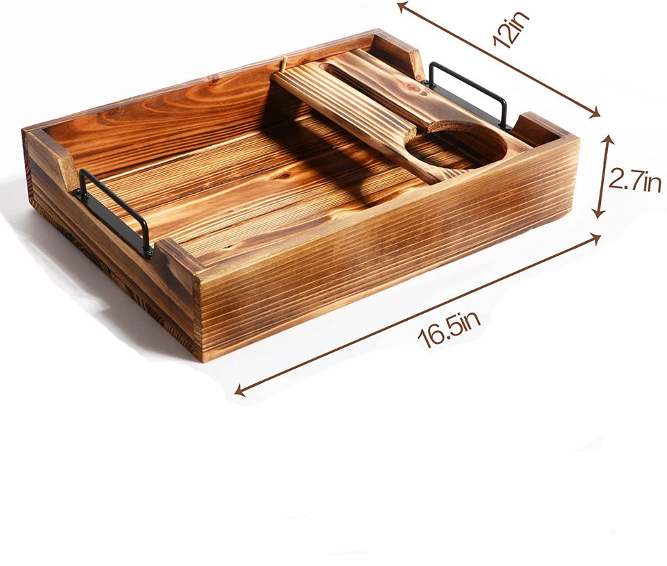 Petit déjeuner Table basse nourriture bois pouf plateau tasse porte-boissons en bois verre à vin plateau de service avec poignées