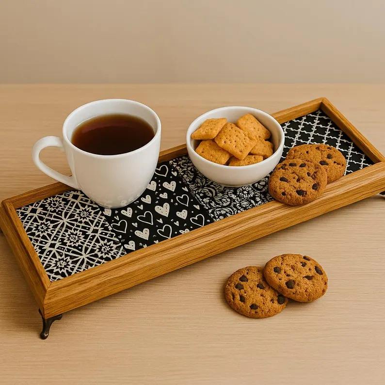 Plateau en bois imprimé pour le petit-déjeuner au lit, plateau imprimé pour le service du petit-déjeuner, plateau de service en gros pour la maison et la cuisine