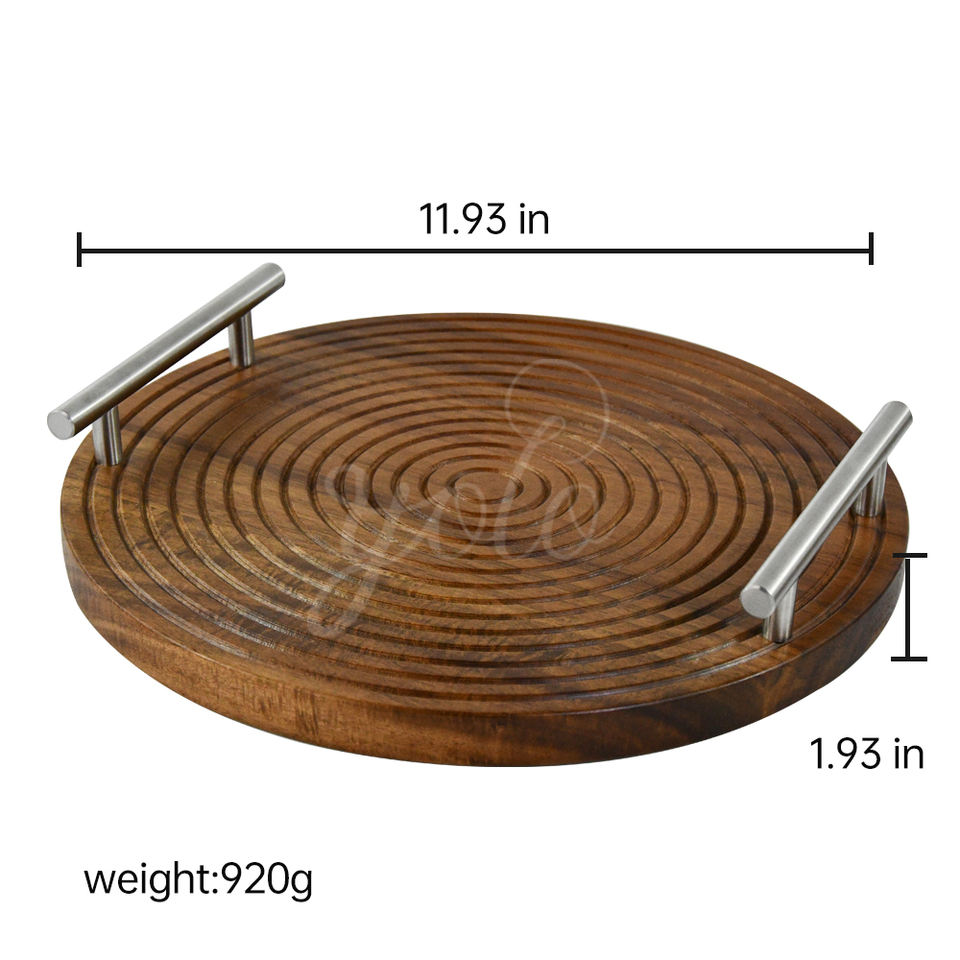 Petit déjeuner bois rond stockage des aliments plateau de service décoratif avec fond en rotin fait main pour comptoir de cuisine pièce maîtresse maison