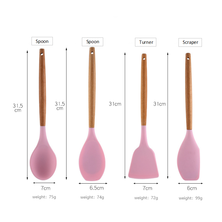 Breal – ensemble d'ustensiles de cuisine en silicone, 13 pièces, couleurs personnalisées, avec manche en bois et support