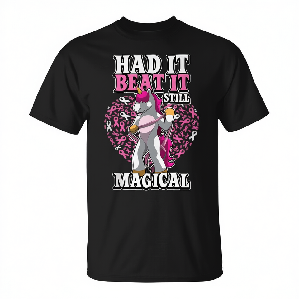 T-shirt licorne magique à ruban rose pour survivants du cancer du sein