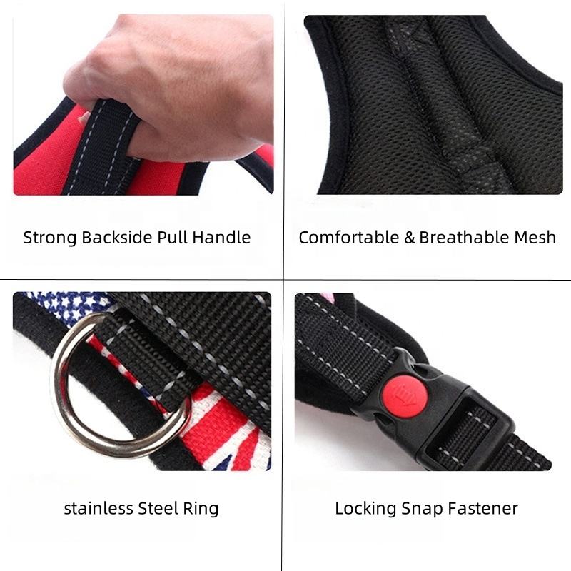 Harnais respirant 100% nylon réfléchissant la lumière pour la marche nocturne Sécurité rapide à libérer Réglable Confortable Sans traction Ni étranglement