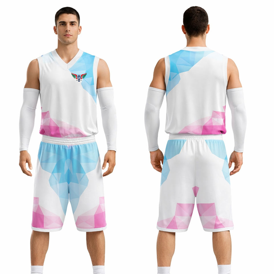 Ensemble de maillot de basket-ball géométrique blanc personnalisé pour hommes, uniforme de sport sans manches, Kit d'entraînement respirant à séchage rapide