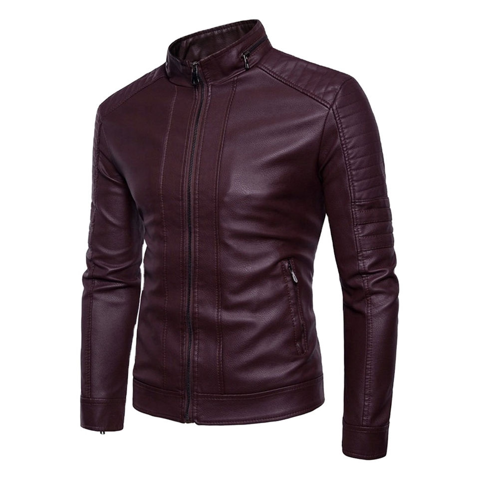 Veste en cuir en toile respirante personnalisée en gros mince tenue décontracté régulier avec col montant pour l'hiver veste en cuir pour hommes