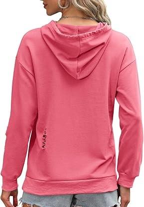 Respirant tenue décontracté à la mode conception personnalisée femmes en détresse sweats à capuche éponge mélangé vente chaude bord brut à capuche en détresse
