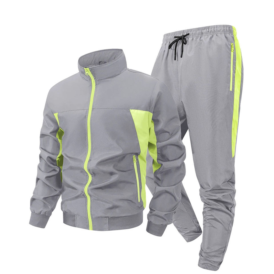 Ensemble de survêtement d'hiver respirant en tissu pour homme, grande taille, gris, avec sweat à capuche et pantalon de jogging