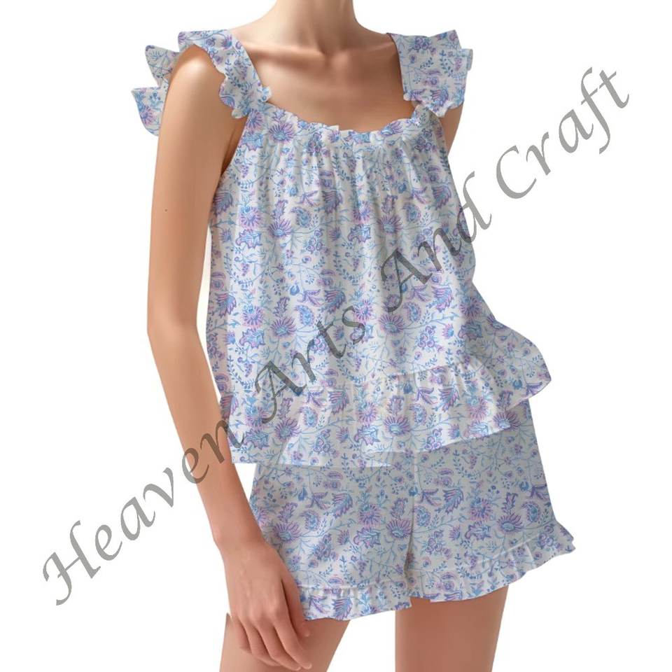 Product name:100% Cotton Printed Ruffle Pajama Set