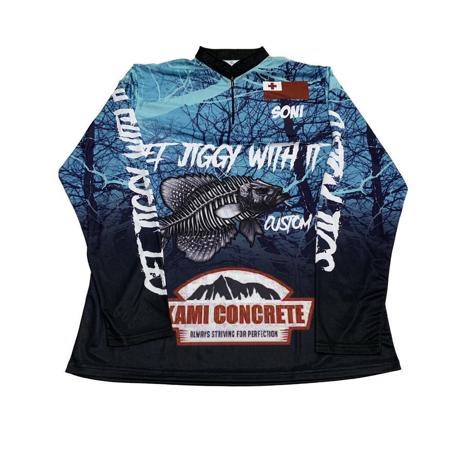 Maillot de pêche sportive respirant personnalisé impression sublimée fermeture éclair