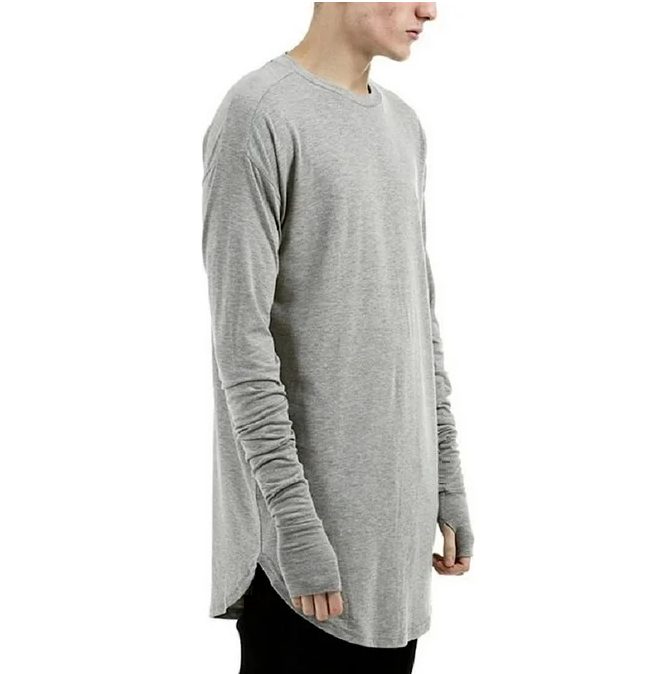 T-shirt allongé à manches longues avec impression personnalisée respirante Hip Hop pour hommes