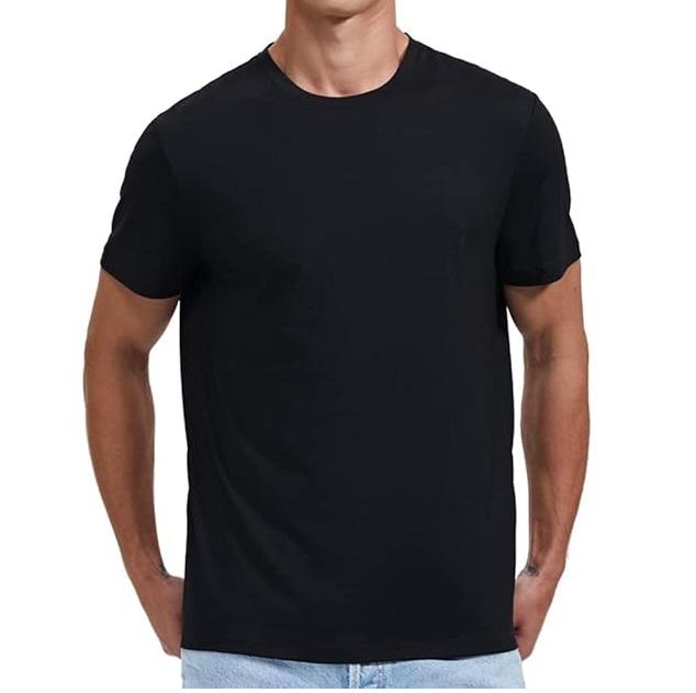 T-shirt en laine respirant noir personnalisable à manches courtes, col rond, coupe carrée, pour le sport et le fitness