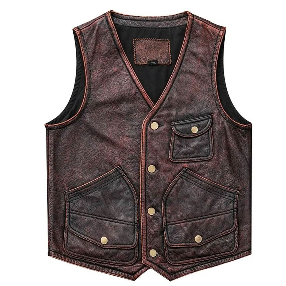 Outclass Wear Top Meilleure Mode À La Mode Look Hommes Biker En Cuir Gilet Respirant Haute Rue Sans Manches Hommes Biker En Cuir Gilet