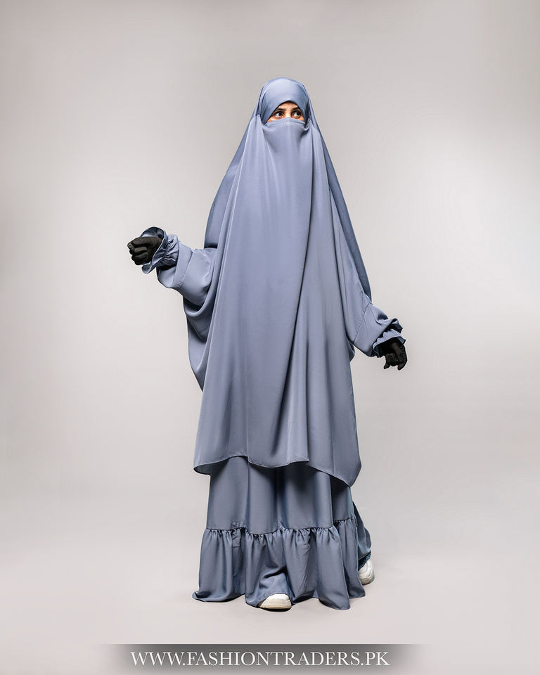 Product name:Two Piece Elastic Ruffle Sleeves Jilbab With Ruffle Skirt