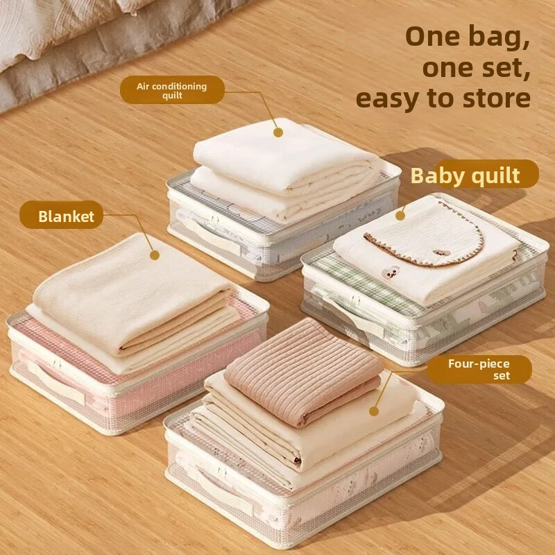 Sac de rangement respirant et anti-poussière pour la maison, draps, housse de couette, ensemble de 4 pièces, organisateur de garde-robe, anti-moisissure, personnalisable, vente en gros