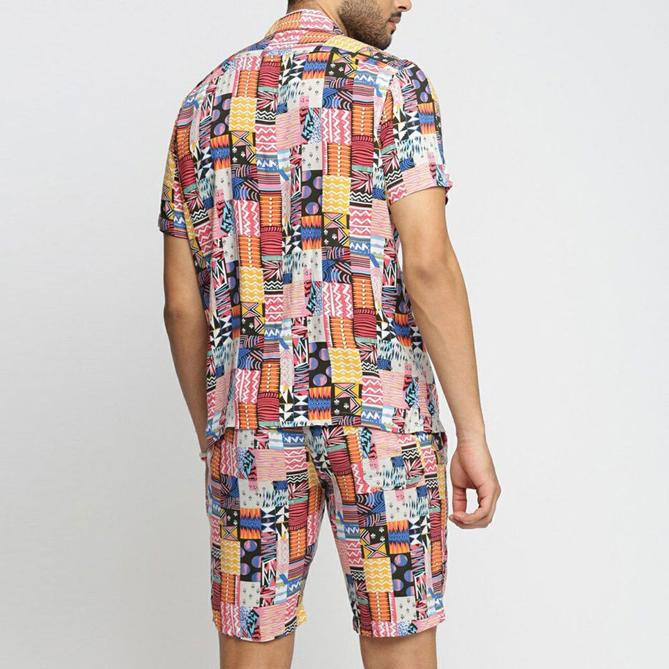 Ensemble deux pièces en coton respirant imprimé grande taille pour homme, style décontracté urbain, t-shirts et shorts, personnalisable OEM