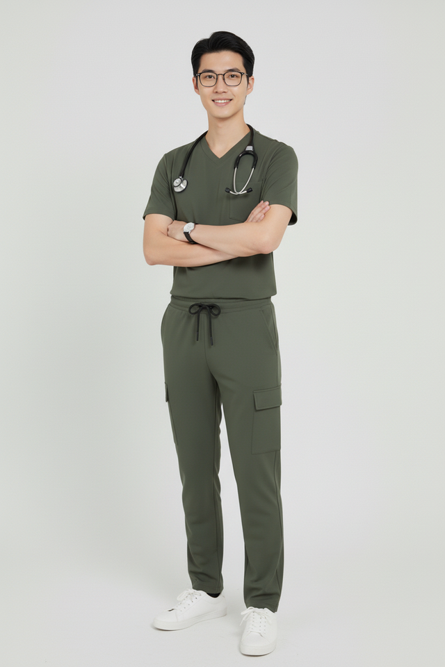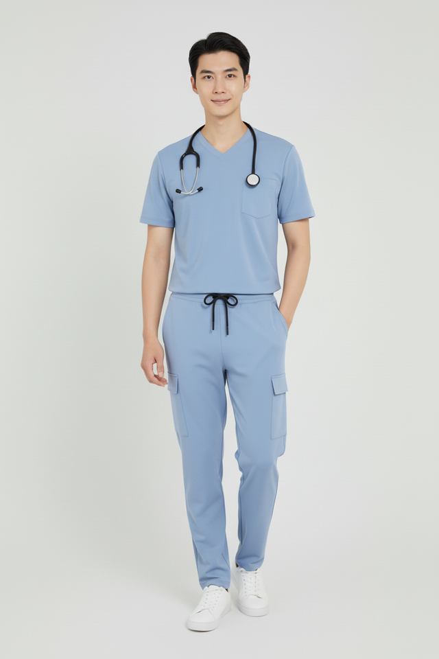 Ensembles de gommage médicaux en tissu respirant avec plusieurs poches Logo personnalisé Cargo Jogger pantalon tissé fabricant d'uniformes d'allaitement