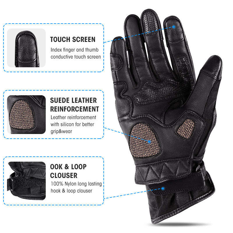 Gants de moto pour hommes en tissu respirant, fabrication en usine, 100% cuir, gants de conduite