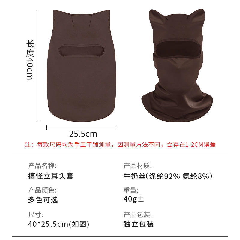 Breathable Full Face Mask With Cat Ears For Motorcycle Riding Unisex Cycling Headgear Solid Color X66