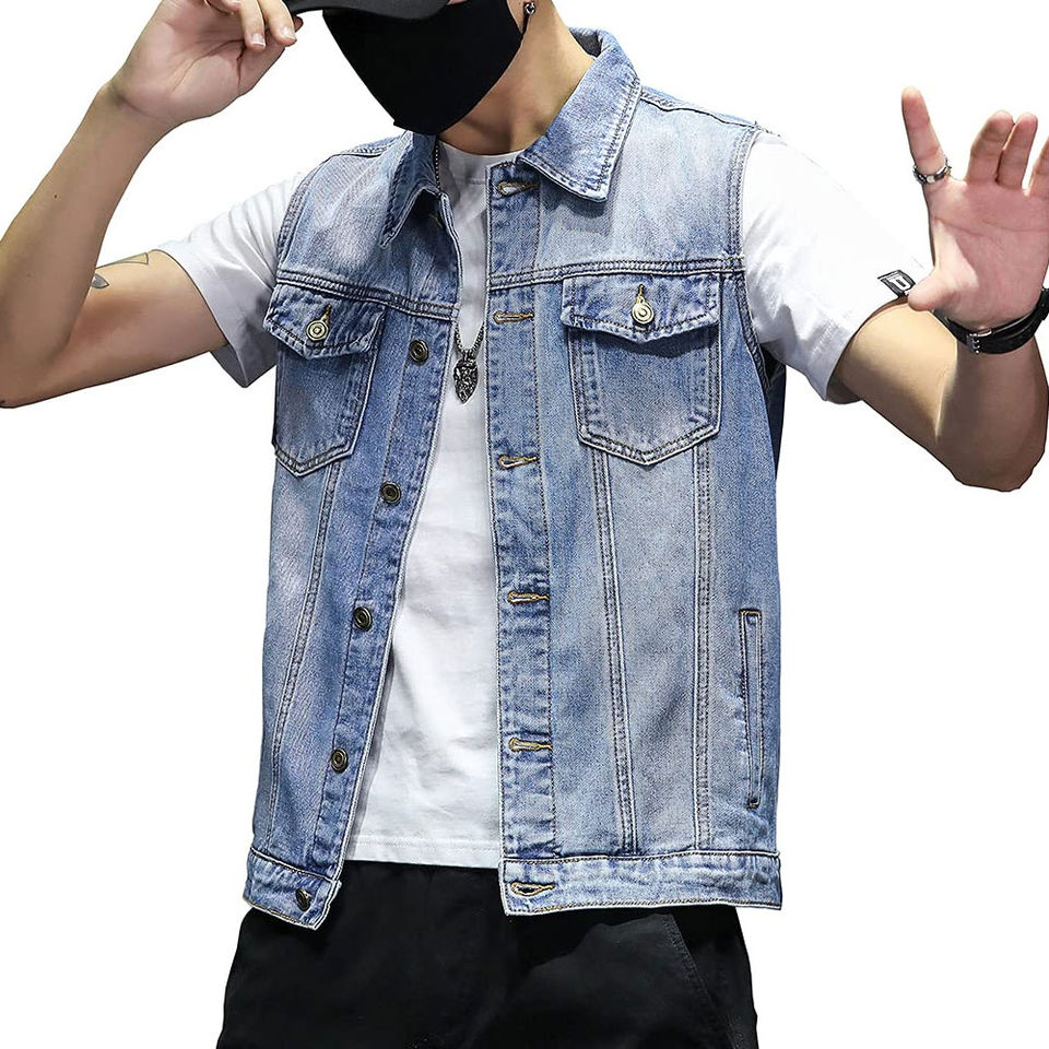 Gilet en jean réversible respirant de haute qualité pour homme, sans manches, imperméable et coupe-vent