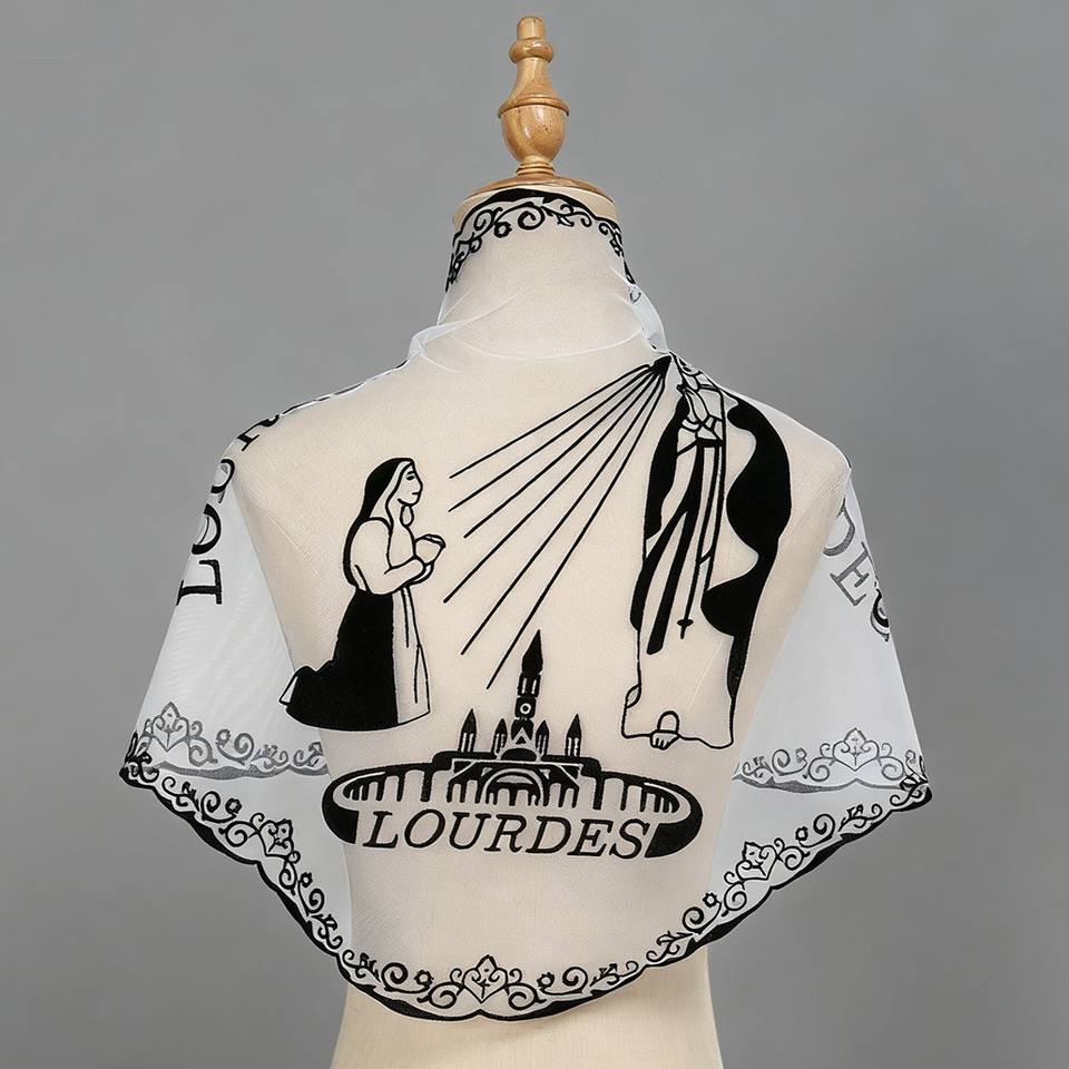 Châle Hijab Respirant pour Cérémonie Religieuse et Usage Quotidien, Foulard Triangulaire Femme à Motif Brodé Vierge Marie Catholique