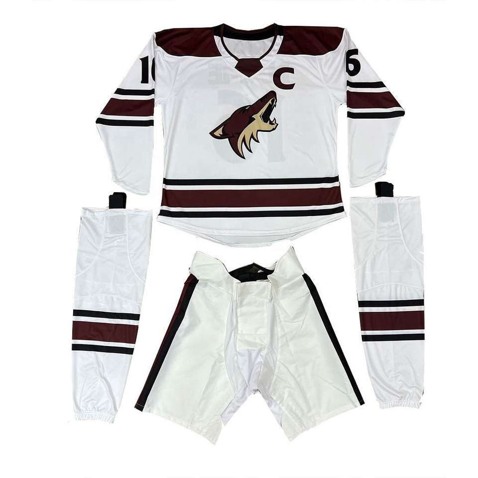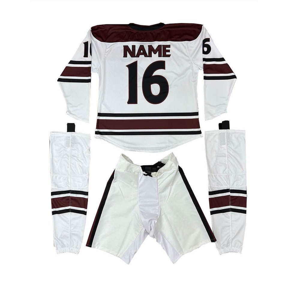 Maillots de hockey sur glace respirants, coques, chaussettes avec logo brodé sur le devant et service OEM pour les designs personnalisés