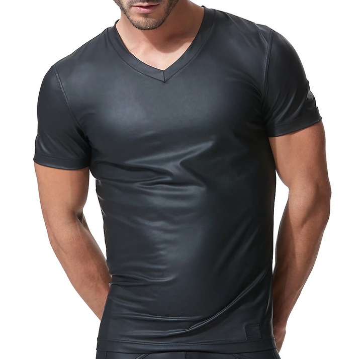 Breathable Leather t Shirts V Neck t Shirts Stylish Design in Good Quality Comfortable for Men