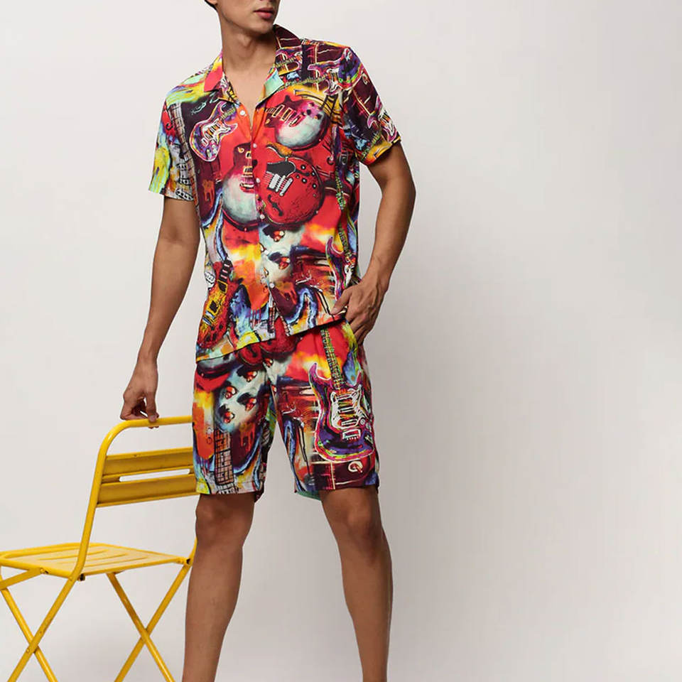 Ensemble de shorts d'été respirants légers pour hommes meilleur Style nouvel Article chemise à col montant tissu éponge Service OEM motif solide