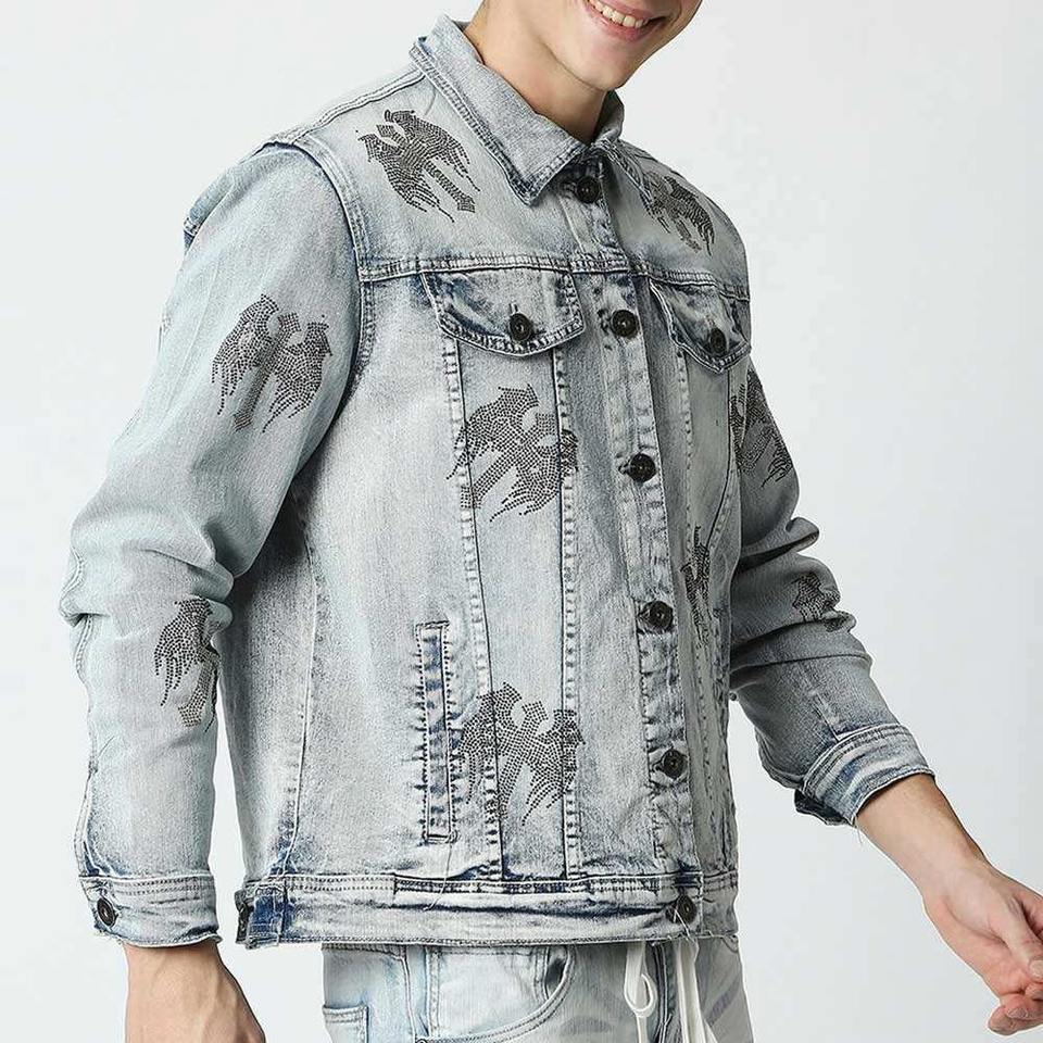 Vestes en jean respirantes et imperméables pour hommes, grandes tailles, logo personnalisé sur le devant, 100% coton, fabriquées au Pakistan, veste d'hiver