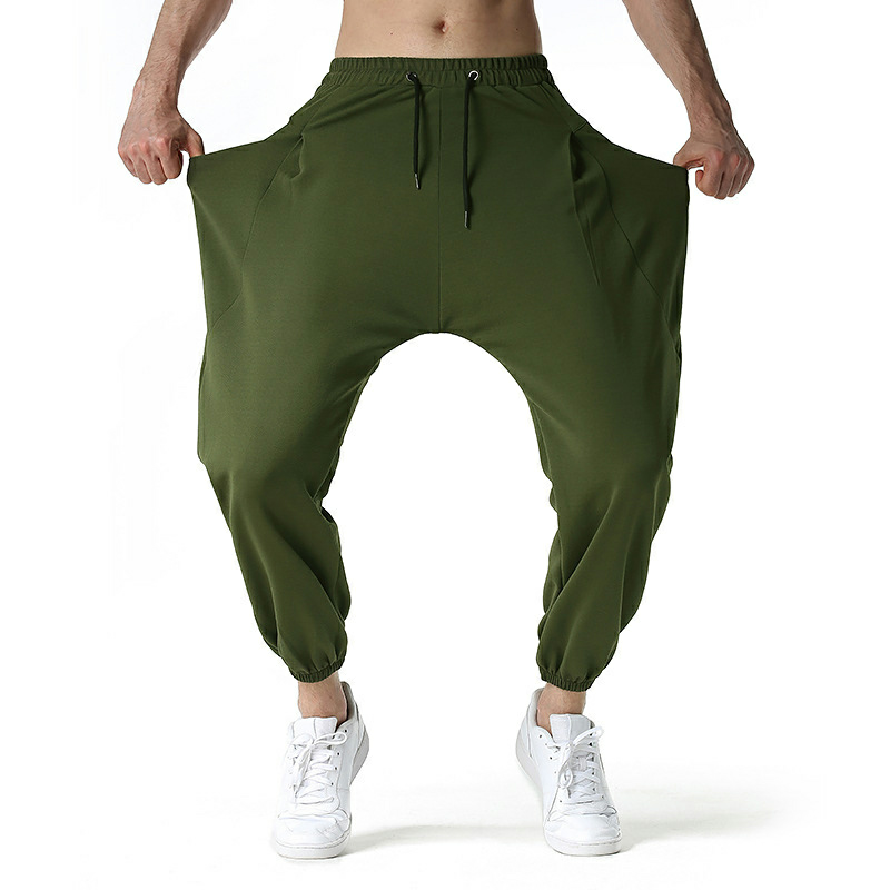 Pantalons de survêtement unisexes respirants, légers, à taille élastique, à entrejambe tombant, couleur unie, polyester, personnalisés pour la salle de sport et la boxe