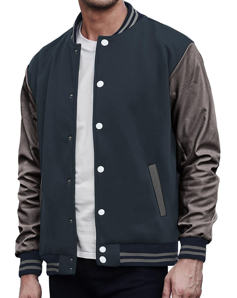 Veste d'université respirante pour hommes avec broderie en chenille et manches en cuir Logo personnalisé Veste d'université de basket-ball pour homme