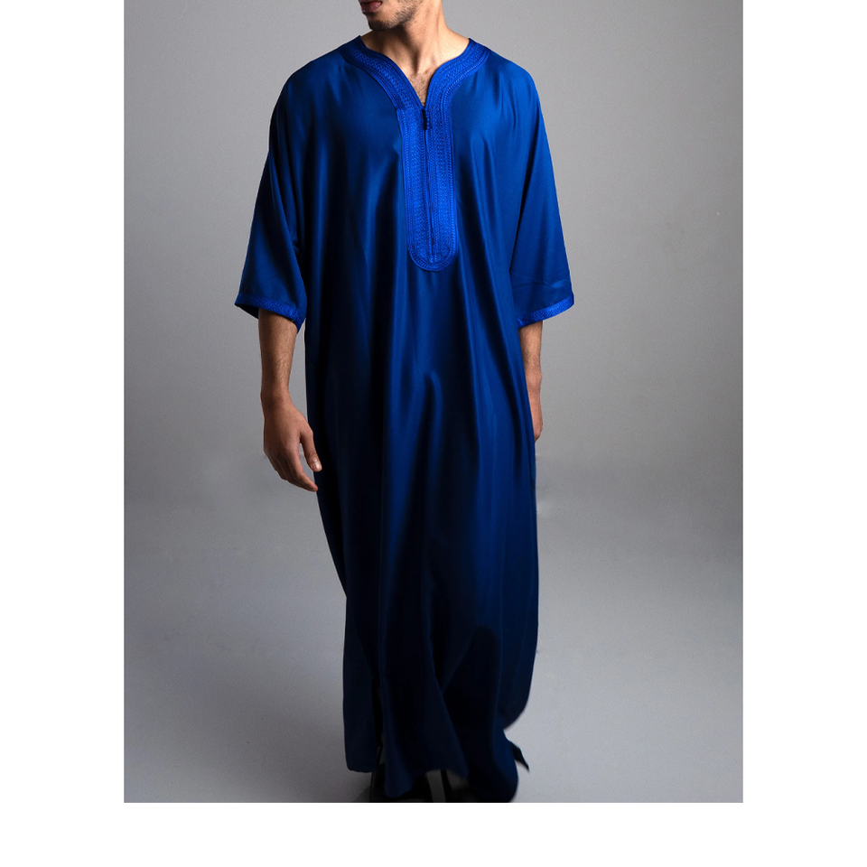 Maxi Thobe Marocain Respirant et Modeste pour Hommes avec Poches, Vêtement Musulman à Manches Longues, Vente en Gros Directe Usine