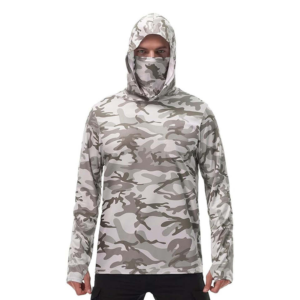 Chemise de pêche sportive respirante en polyester, adaptée aux hommes, t-shirt à manches longues pour la pêche avec capuche