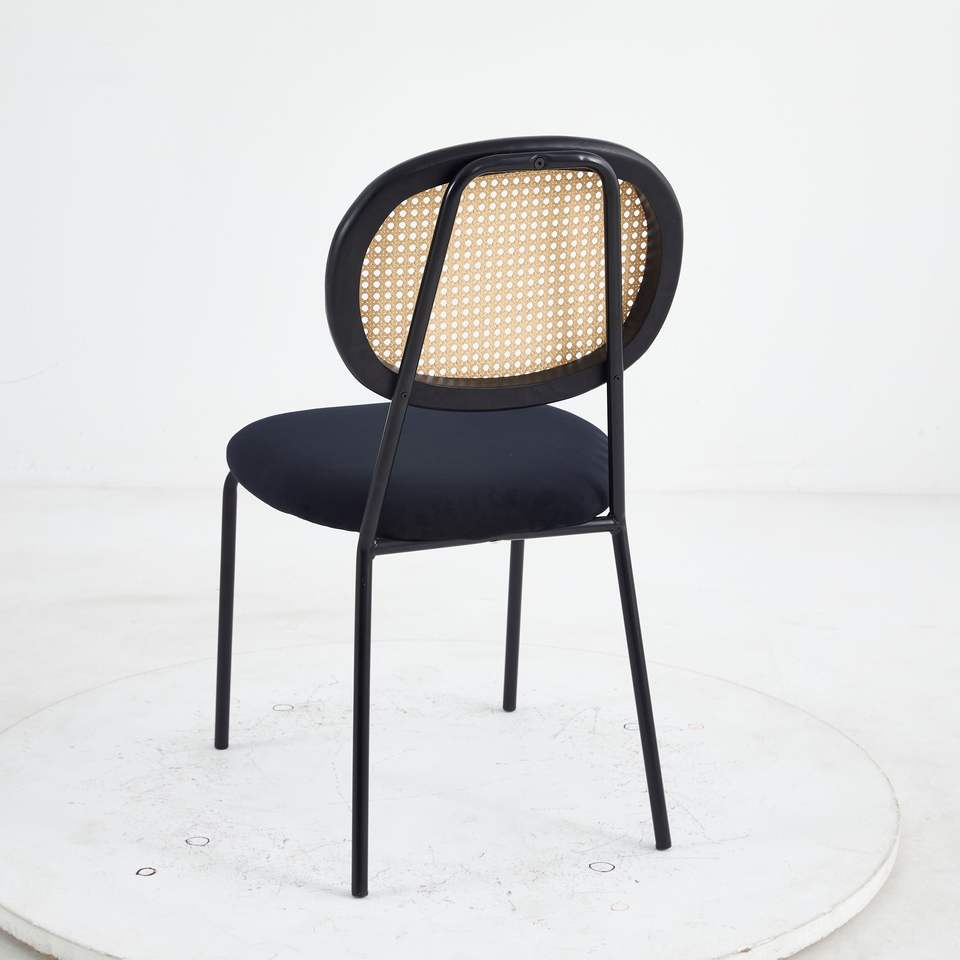 Chaise en velours respirante avec dossier en rotin | Robuste et léger | Entretien facile | Meubles polyvalents pour la maison, pour salon et salle à manger
