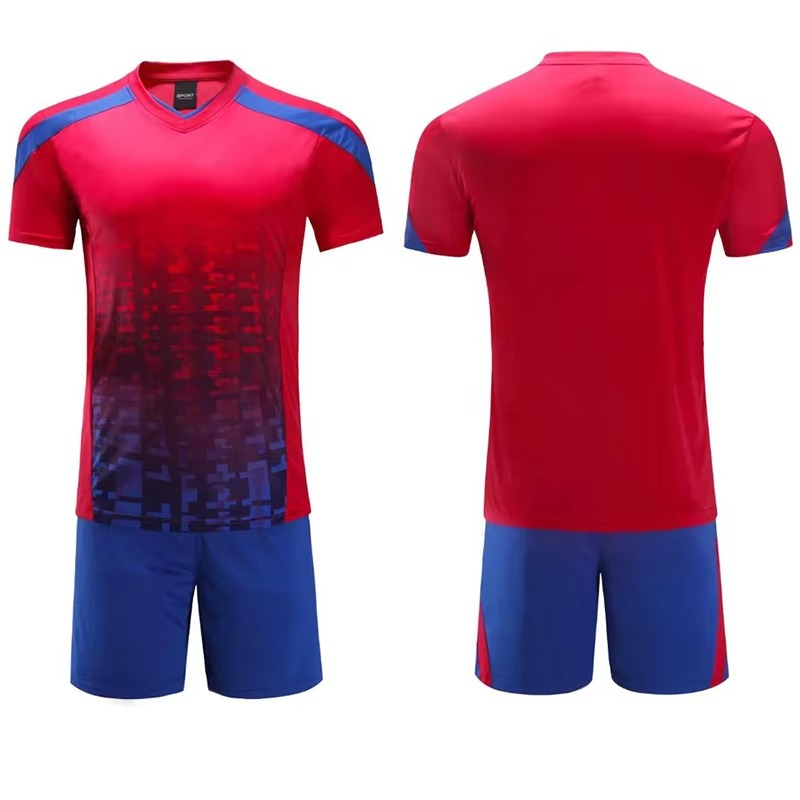 Ensemble d'uniformes de football d'été respirants personnalisables avec impression de logo, 100 % polyester, séchage rapide, col en V, style français