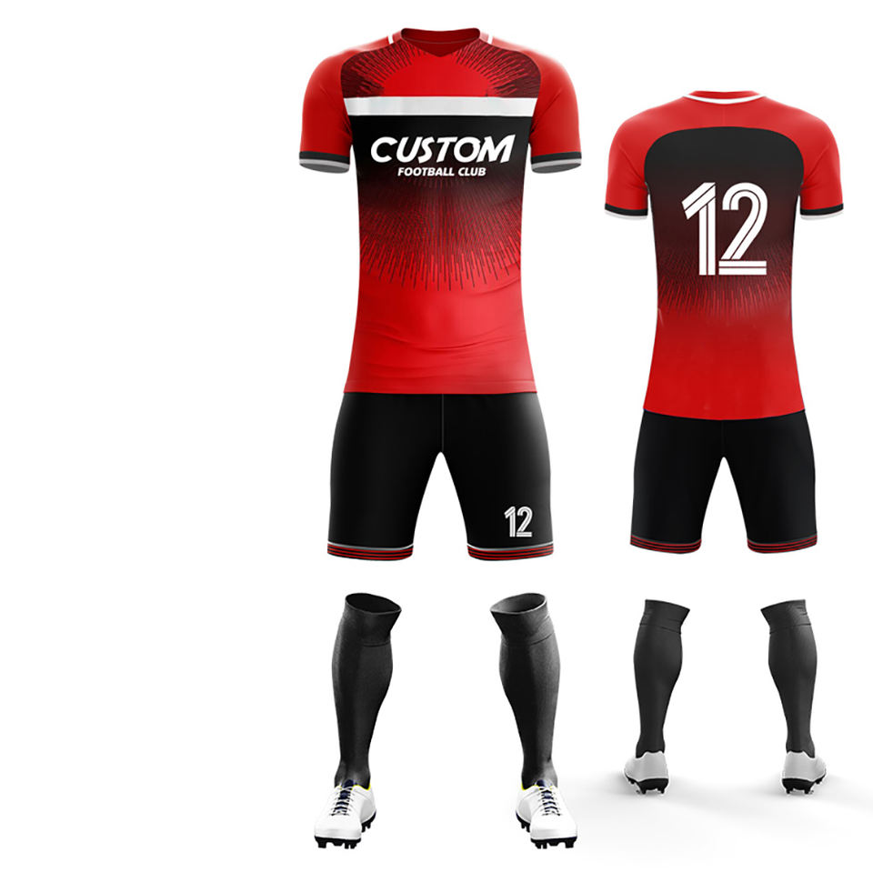Ensemble de maillots de football pour hommes personnalisés en sublimation respirante été/hiver, col en V, jersey léger en polyester, coutures renforcées
