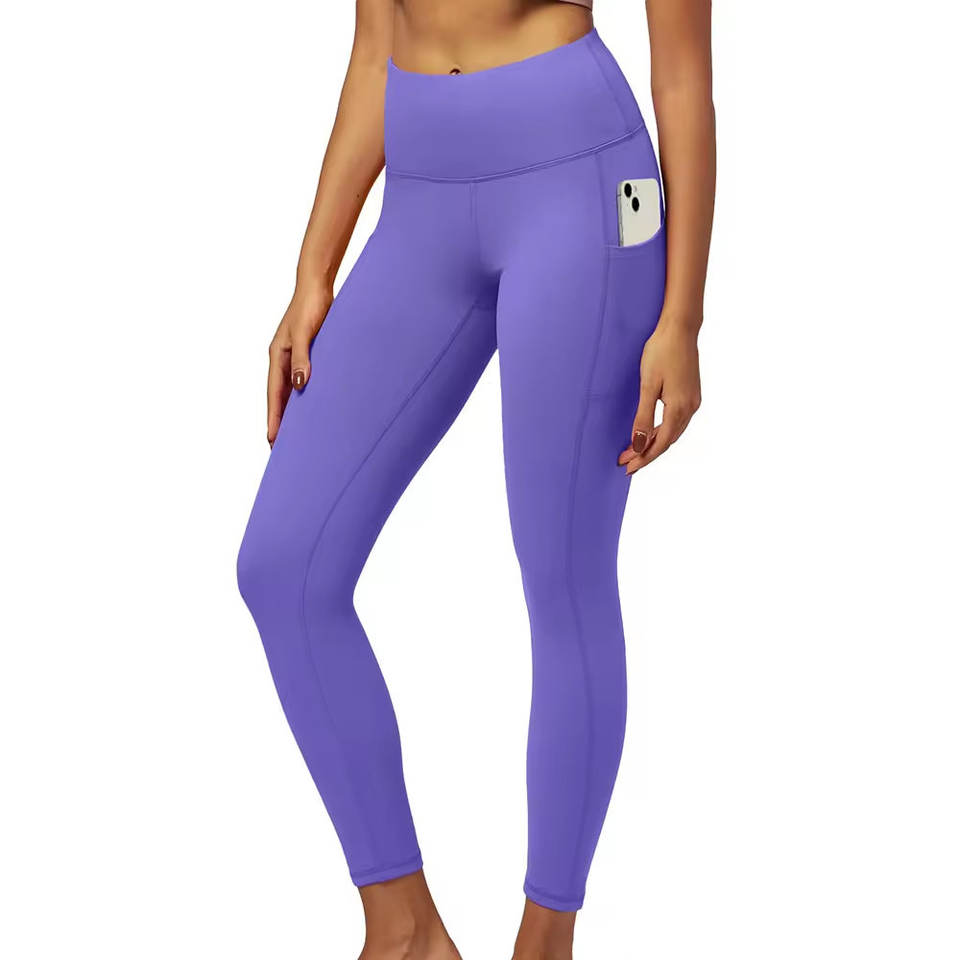 Leggings de yoga respirants, couleur unie, séchage rapide, taille mi-haute, vente en gros, taille élastique, tissu extensible, vêtements de travail pour femmes