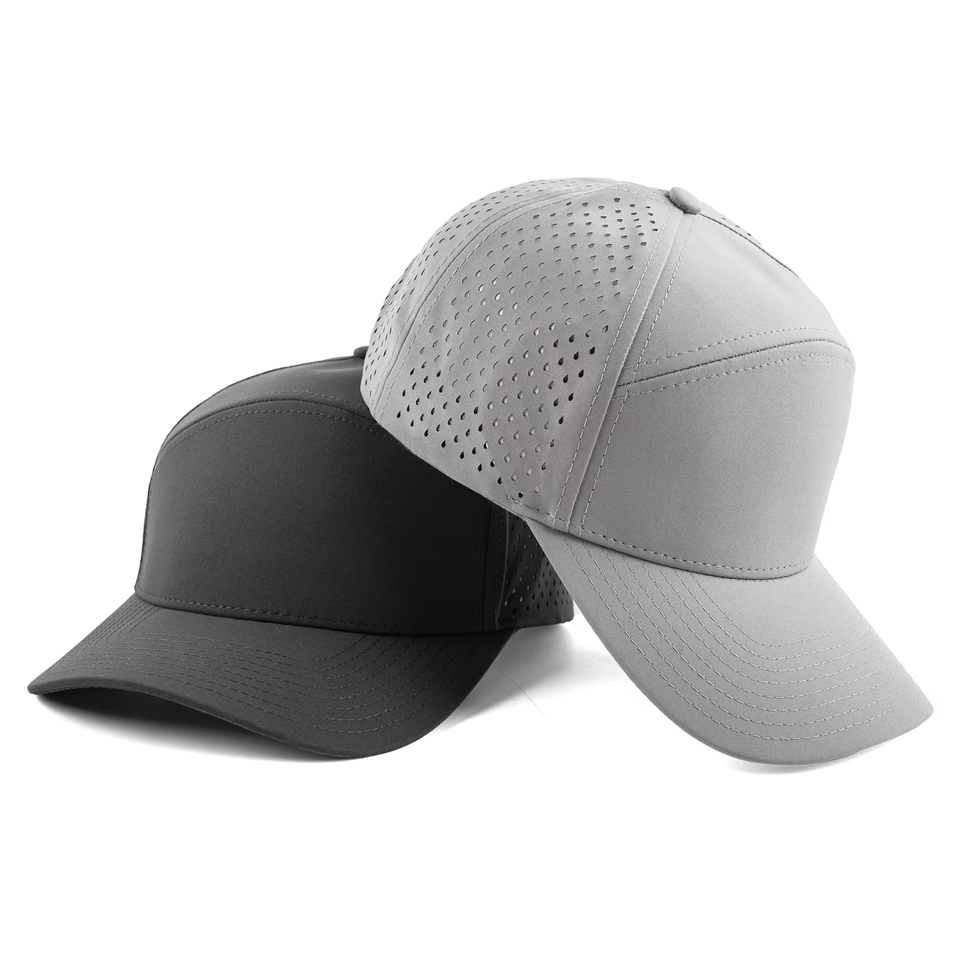 Casquettes de course de sport respirantes Logo personnalisé Casquette de baseball en maille noire et grise Fournisseur d'extérieur d'été léger