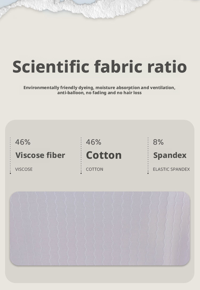 46% viscose fiber, 46% cotton, 9% spandexMaterial