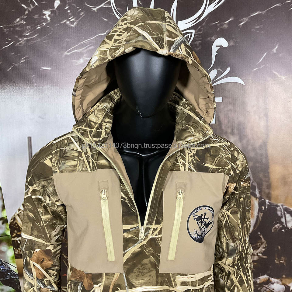 Veste tactique unisexe respirante et imperméable en softshell camouflage avec capuche et fermeture éclair 1/4 avant pour la chasse en extérieur