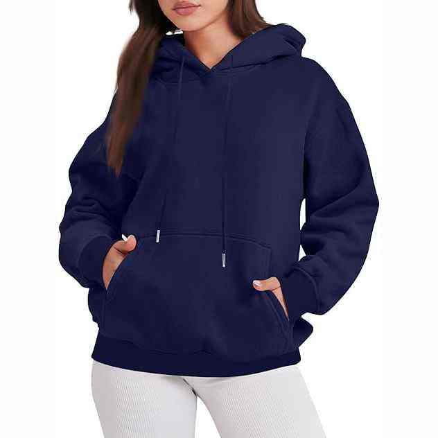 Breathable Winter Women's Hoodies Pullover Loose Solid Color Long Sleeve Cotton Custom Logo Velour Fabric