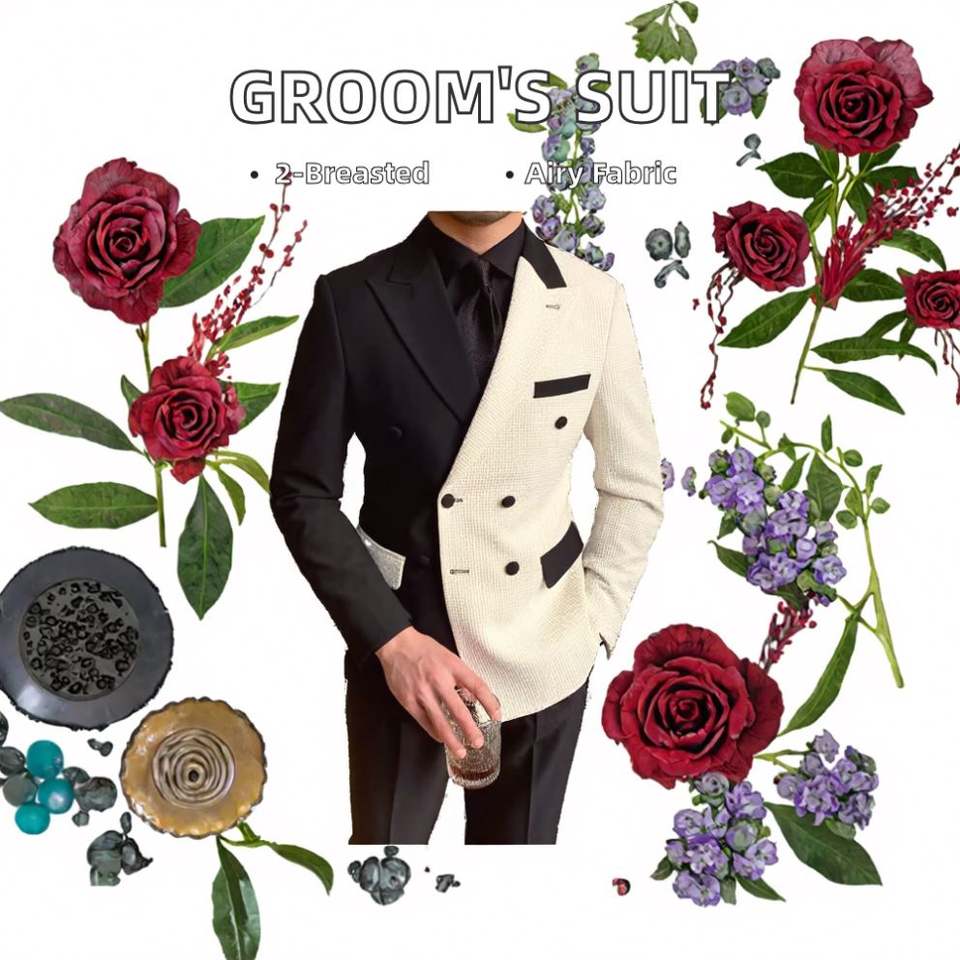 Breathable Worsted Double Breasted Design for Wedding Banquet Dress Two-Piece Business Suit for Groom Best Man Button Fly