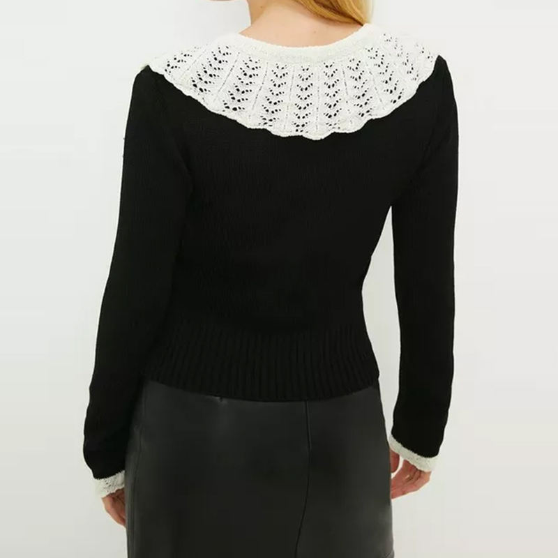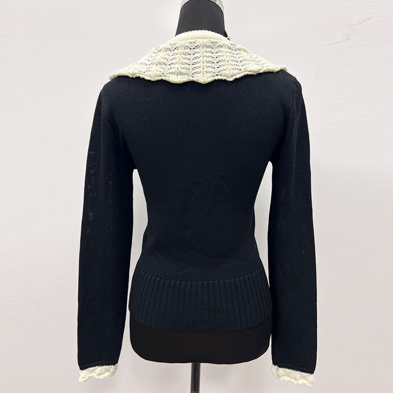 Breton Lapel Women's Sweater Mesh Fabric Vintage Buttons Decorated Women's Knitwear Banquet Noble Evening Dress