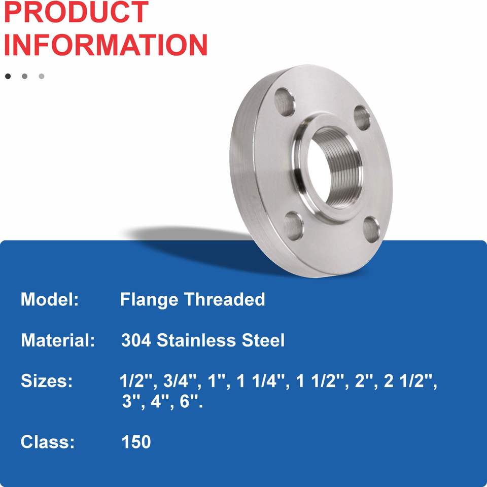 Brida Roscada de 1/2 "Acero Inoxidable 304 Ansi B16.5, #150