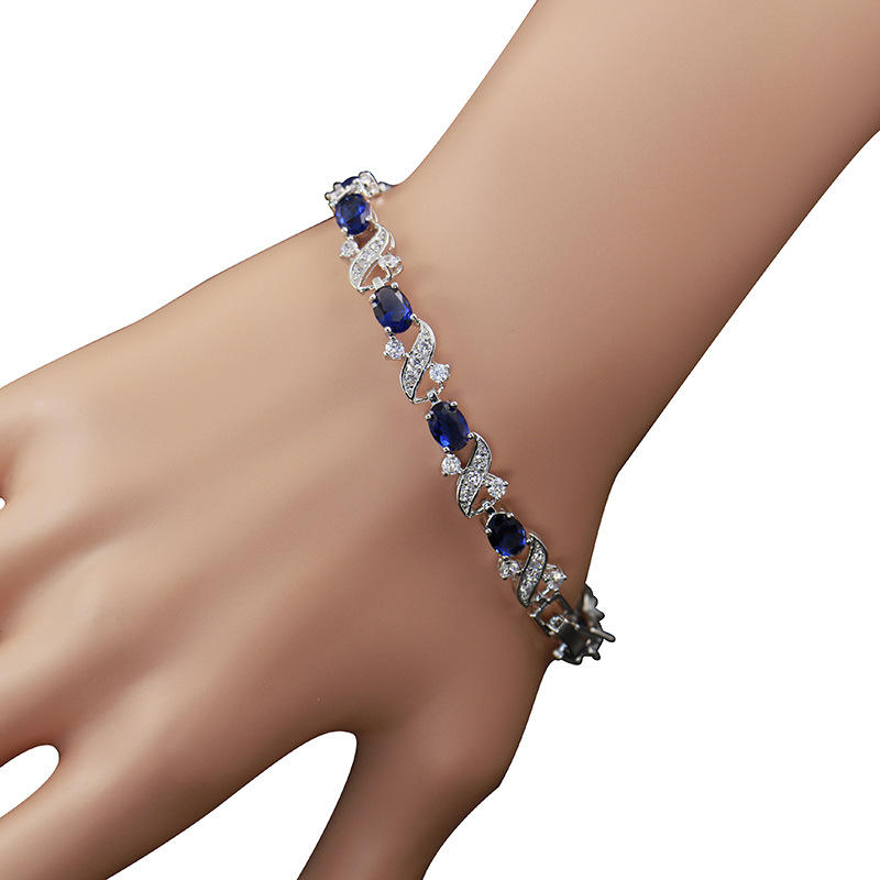 Bridal 925 Sterling Silver Blue Sapphire Bracelets For Women Cubic Zirconia Stones Wedding Costume Jewelry